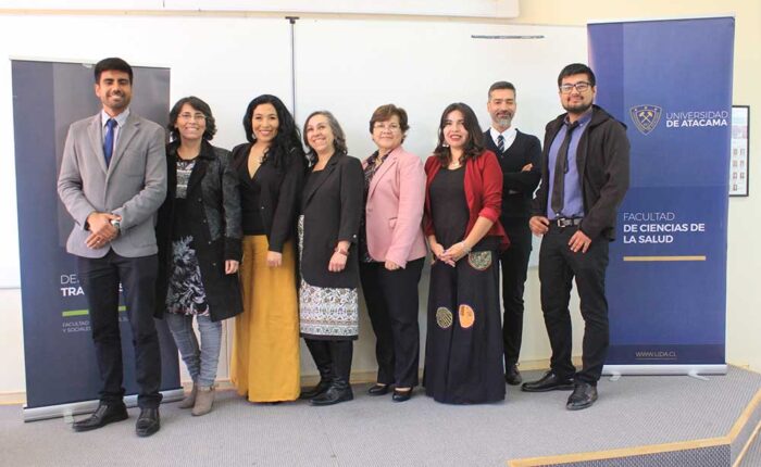 De izquierda a derecha: Pablo Dubó enfermero, Mg(s) Salud Pública apoya en método cuantitativo y TICs, es director del Laboratorio Social inclusión que desarrolla proyectos de innovación, Dra. Maggie Campillay, enfermera, coordinadora del Magíster de metodologías cualitativas, y la bioética; Mg. Ana Calle, kinesióloga, especialista en bibliometría, buscadores booleanos, y revistas de alto impacto, Dra. María Cristina González trabajadora Social, antropóloga, y experta en migración, Dra. Lilian Navea nuestra Directora de postgrado de la Vicerrectoría de investigación y postgrado; Dra. Cory Duarte, trabajadora social experta en temas de género, Dr. Mauricio Lorca antropólogo, experto en ecología política y patrimonio y Mg(c) Fabián Araya sociólogo, terminando su Mágíster en Salud Pública, dicta clases en metodología de investigación y apoyo en epidemiología social en Medicina. Falta Mg.Daniela Guzmán trabajadora social quien nos apoya en investigación acción.